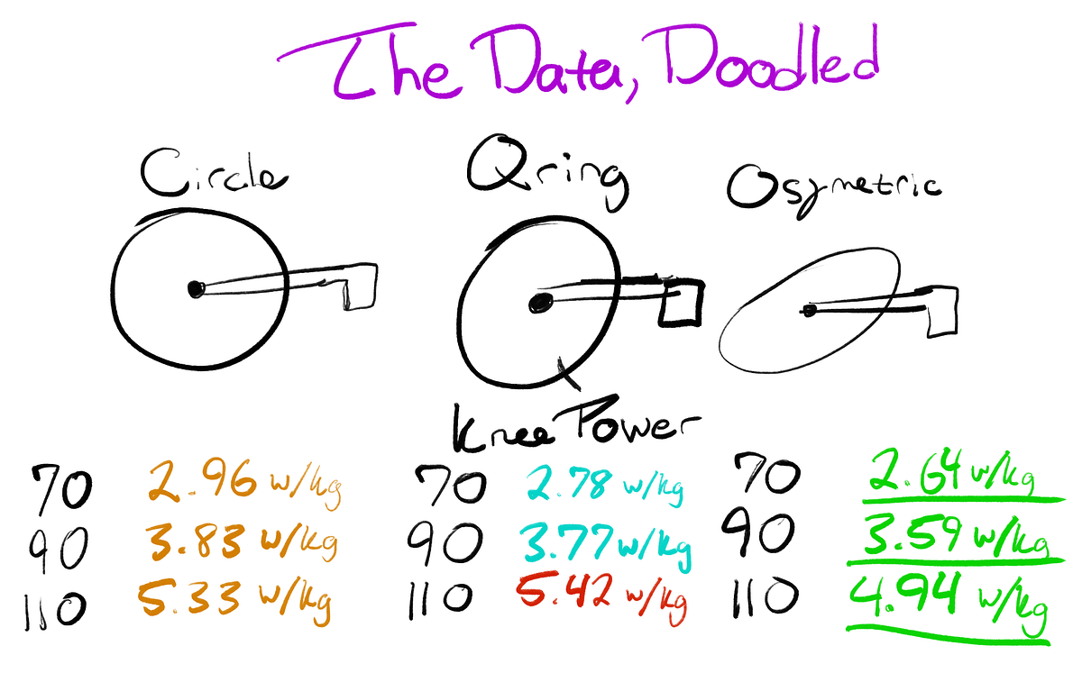 Back in 2014, the journal Sports Biomechanics published an article digging into the kinematics of oval chainrings and came up with some quite interesting results. They tested 14 experienced cyclists at two powers (180 and 300), at three cadences (70, 90, and 110) and on three chainrings (Dura Ace circular, Rotor Q, and Osymetric). They used a myriad of sensors and a half-dozen cameras to analyze what the riders were doing, then scienced the crap out of the data they collected. The team pulled together some interesting results, especially at lower cadences.